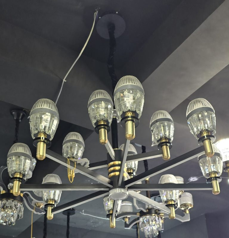 Elevate your living space with the Celestial Chandelier. Its intricate metal framework is adorned with shimmering glass accents, providing a breathtaking display of light and shadow. Ideal for high ceilings and spacious rooms, this chandelier adds a touch of grandeur and elegance to any setting. Illuminate your home with the perfect blend of contemporary style and timeless beauty.
