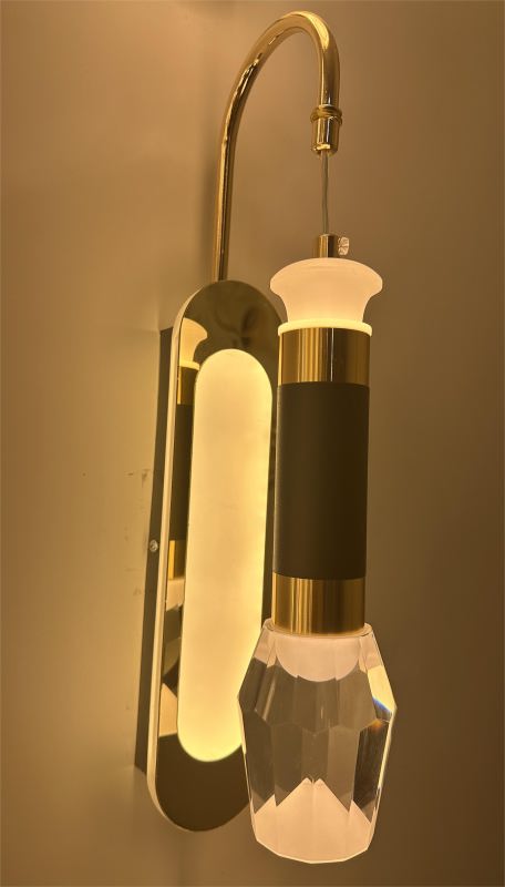 Illuminate your home with the Crystal Wall Lamp, featuring crystal prisms that create a stunning light display. This lamp adds a touch of luxury to any space."