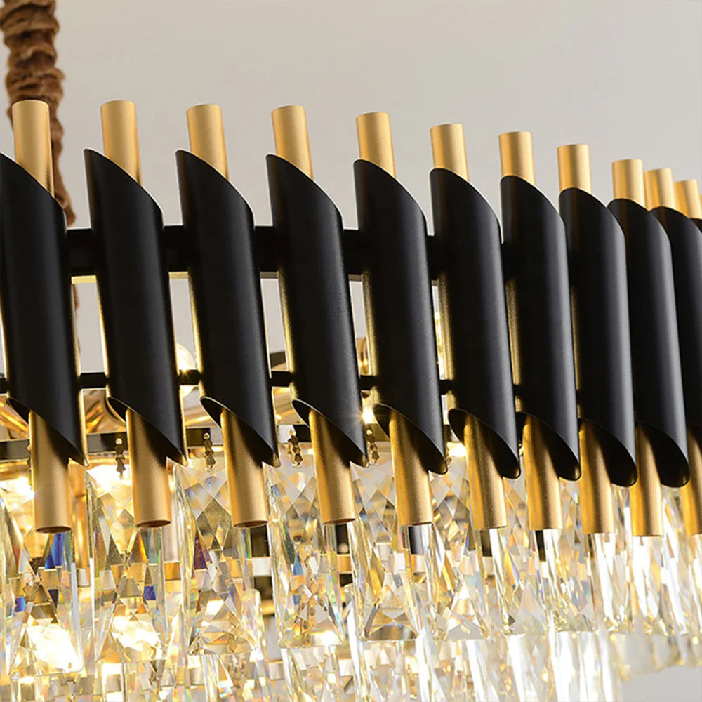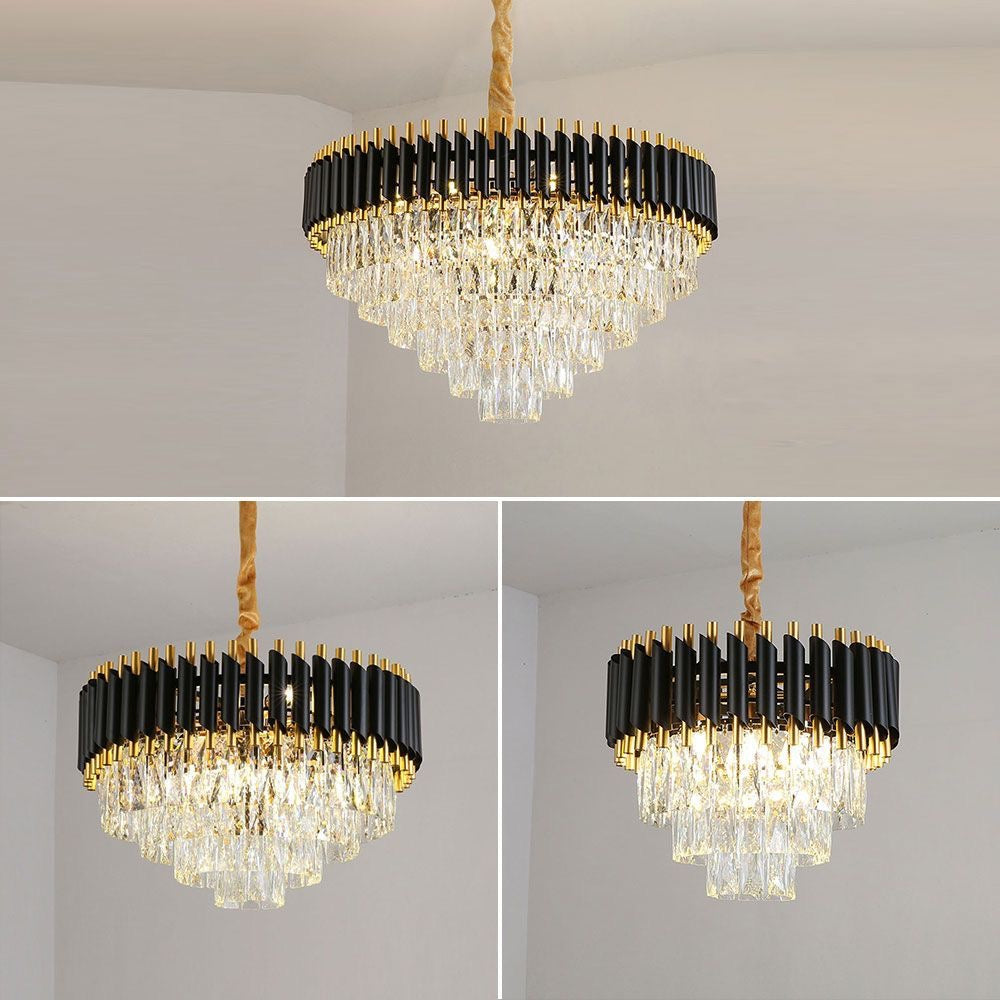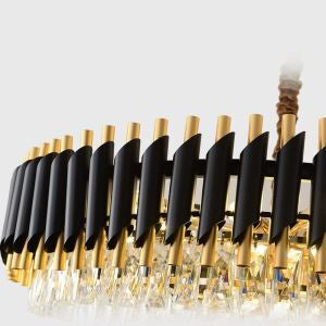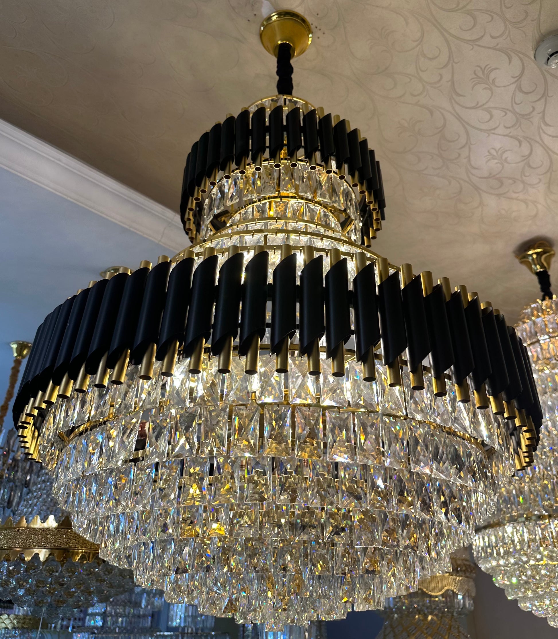 Add a touch of glamour to your home with the Crystal Glow Chandelier. Featuring a striking black and gold finish, this exquisite piece exudes luxury. Available in four sizes - 300mm, 500mm, 600mm, and 800mm by 300mm - this chandelier is the perfect choice for those looking to create a chic and sophisticated ambiance in their space.