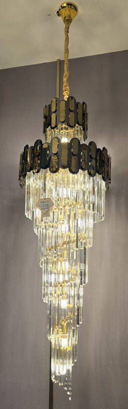 The Crystal Halo offers a unique circular design with hanging crystals that create a halo effect. This pendant adds a touch of modern elegance to any space.