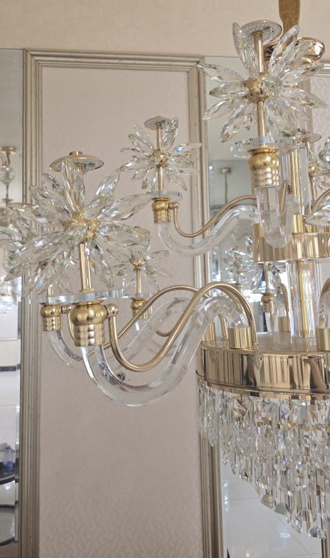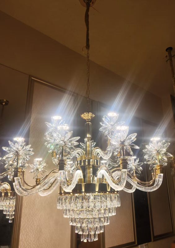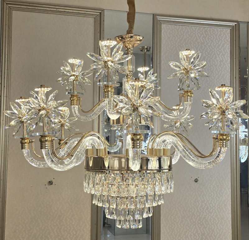 The Crystal Vortex Chandelier offers a dynamic design with spiraling crystal elements. This chandelier creates a captivating light display that enhances any space."