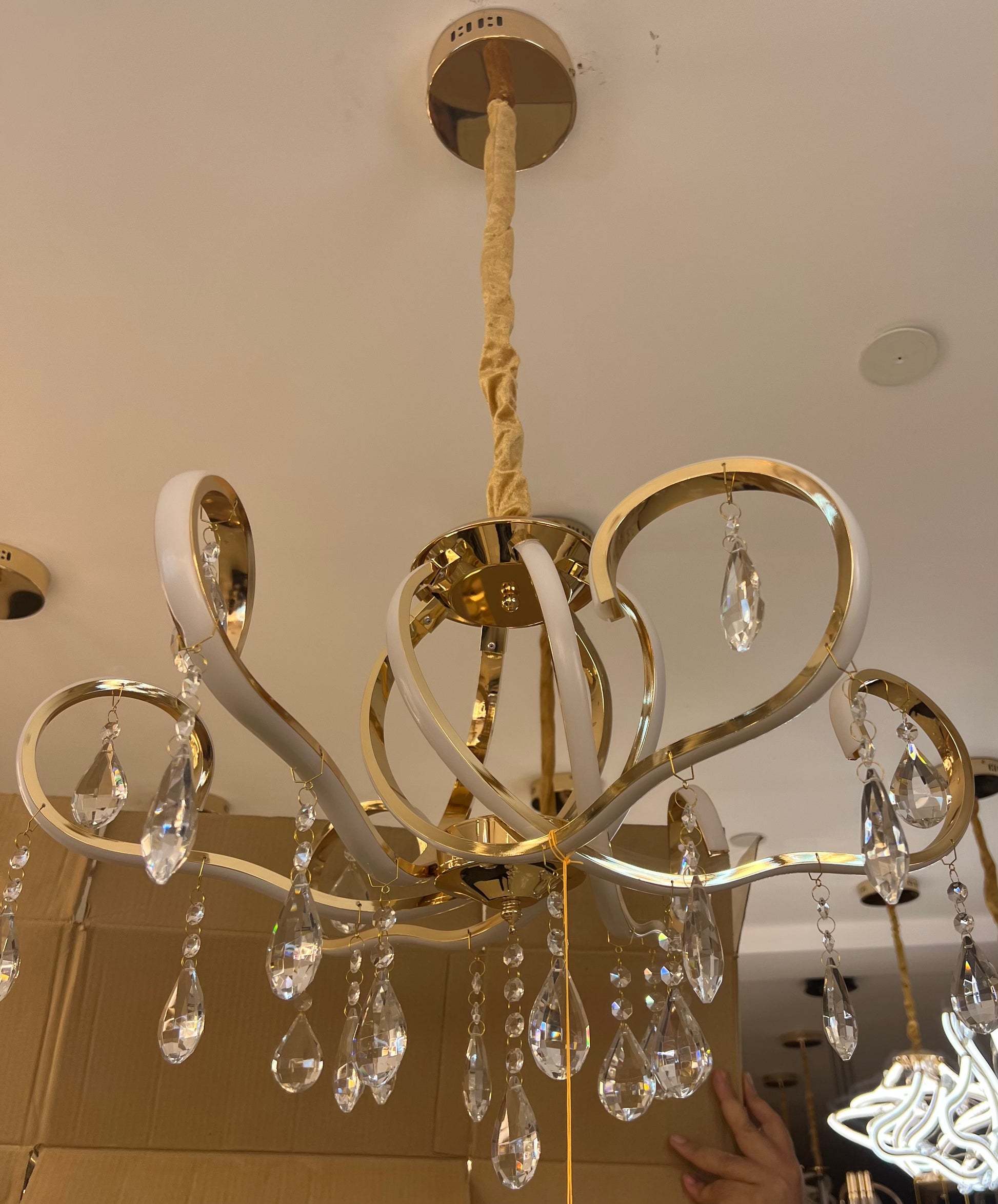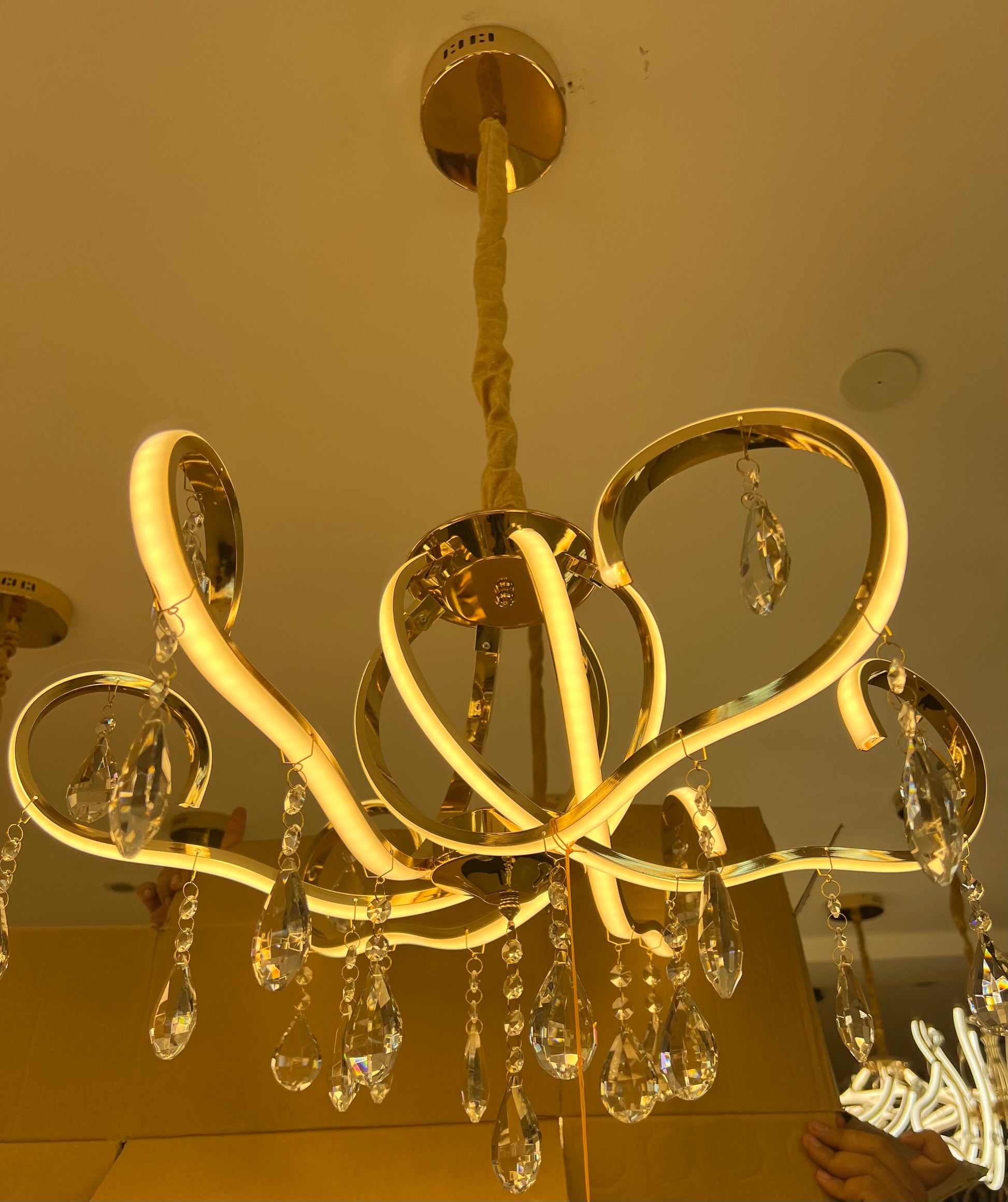 Elevate your living space with the Elegance Chandelier. This stunning piece features cascading crystals that reflect light beautifully, creating a celestial ambiance in any room. The elegant design, coupled with a polished chrome finish, adds a touch of luxury and sophistication to your decor. Perfect for dining rooms, living areas, or grand entryways, this chandelier is a statement piece that exudes opulence and grace.