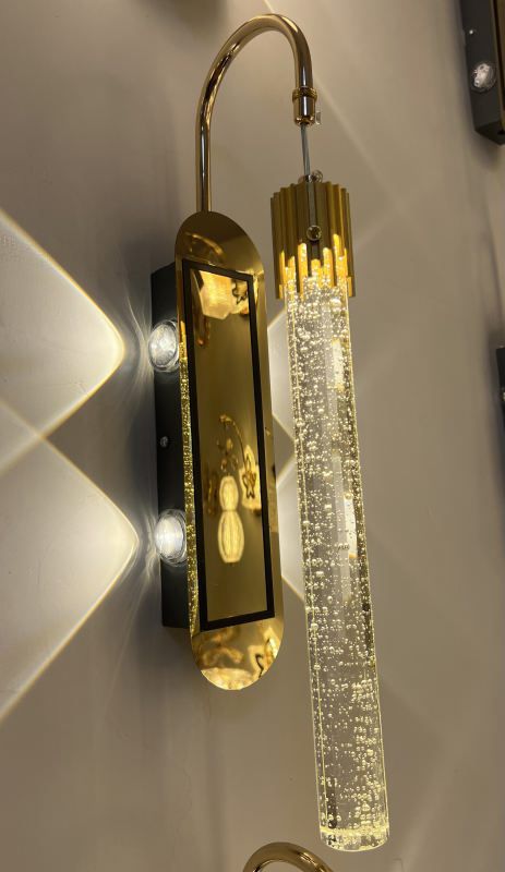 The Golden Horizon Wall Lamp combines a brushed gold finish with a clear glass shade, creating a luxurious look that complements any modern or classic decor.