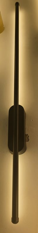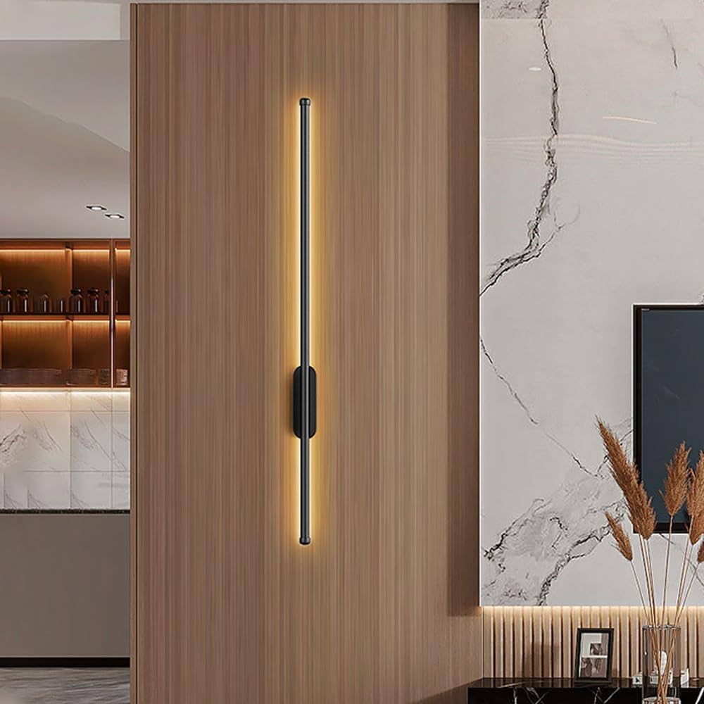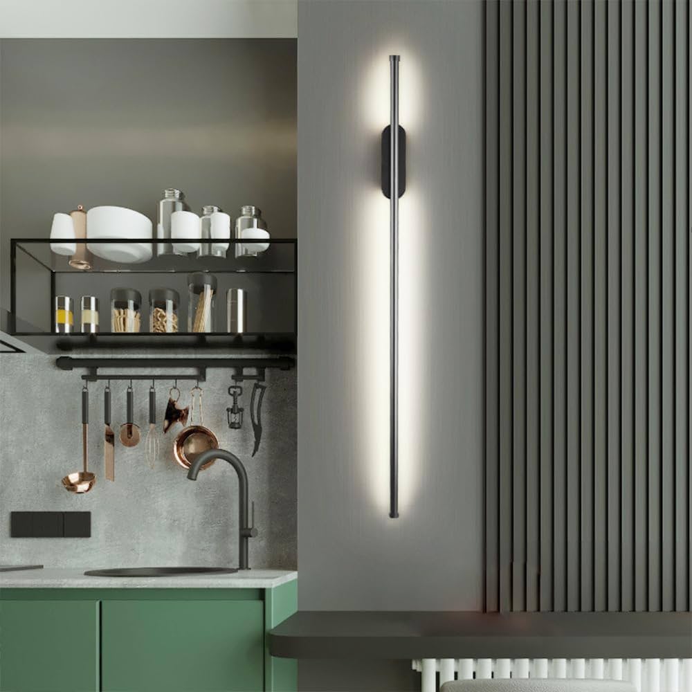 The Luminous Black Wall Lamp features a minimalist design with a Dark shade that diffuses light softly, creating a warm and inviting atmosphere."