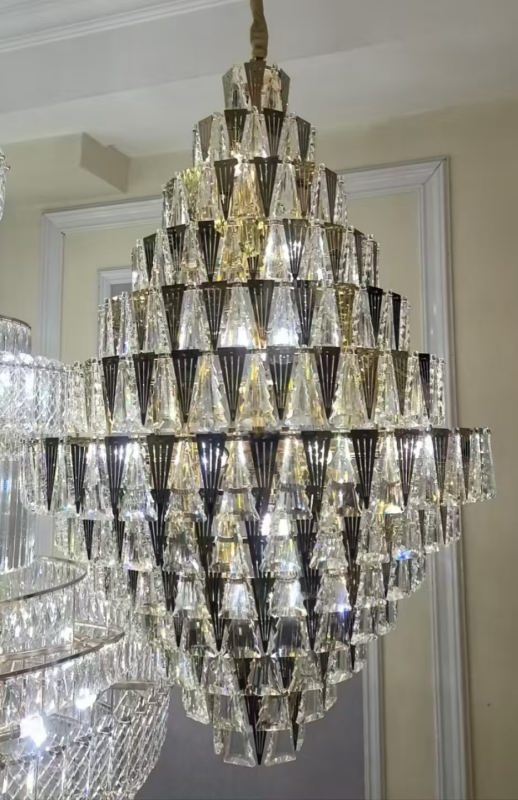 The Nova Glow Chandelier features a sleek design with a glitter effect, blending modern style and classic elegance to enhance any room.