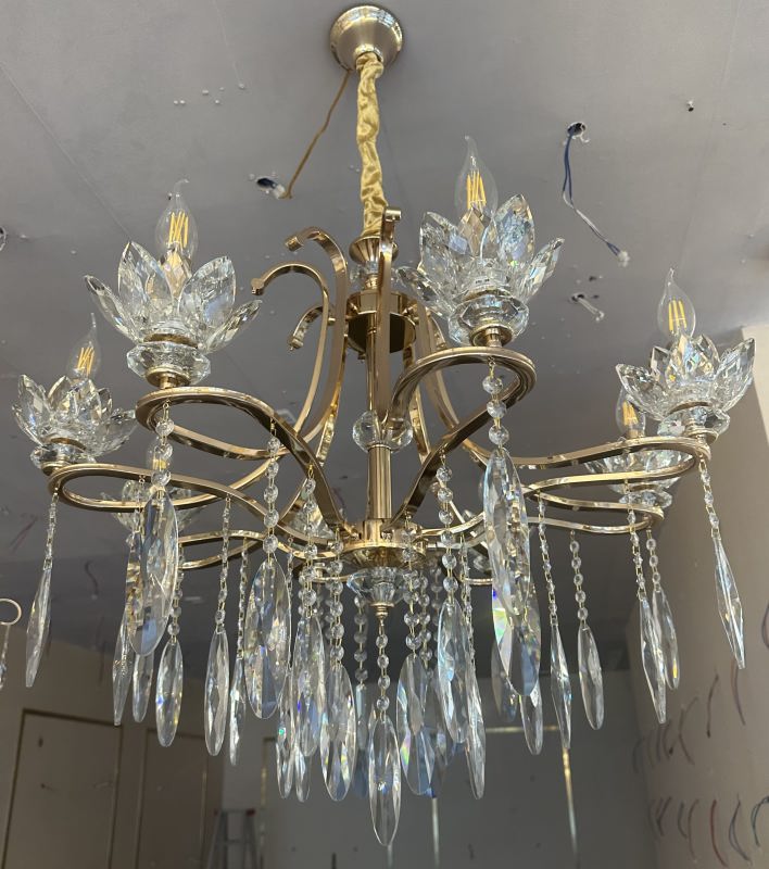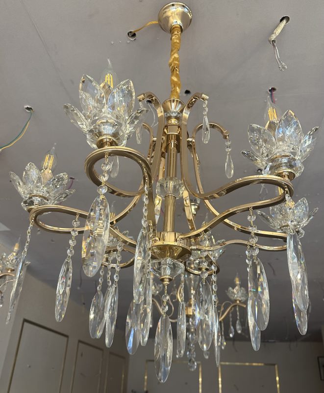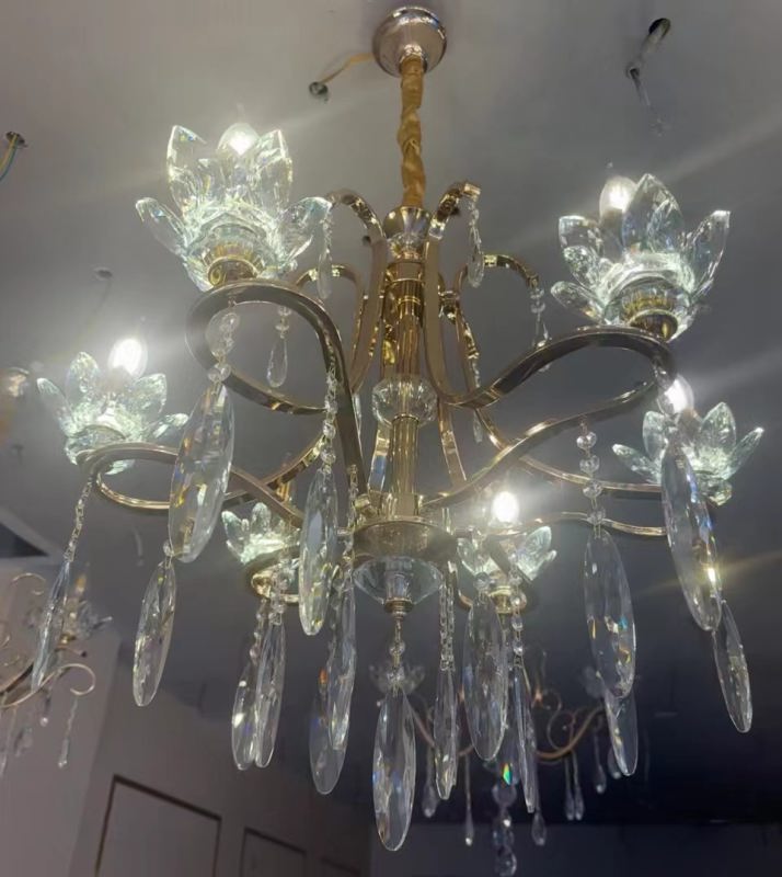 The Splendor Chandelier offers a sophisticated look with its crystal accents and sleek metal frame. Perfect for enhancing the elegance of any space.