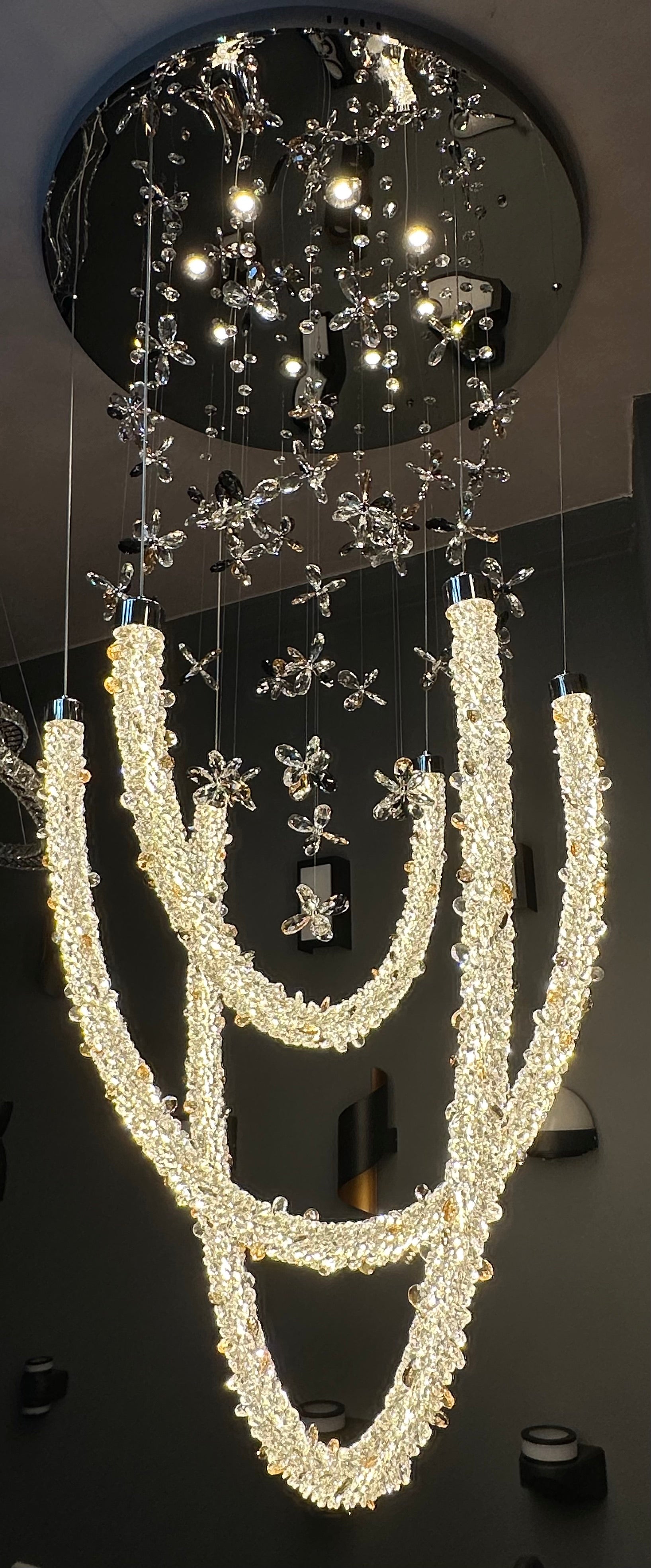Elevate your interior with the Splendor Pendant. This piece features a stunning arrangement of crystal beads and a sleek frame, creating a heavenly display of light. Ideal for luxurious living rooms or upscale dining areas, it brings an air of refinement and elegance to any space.